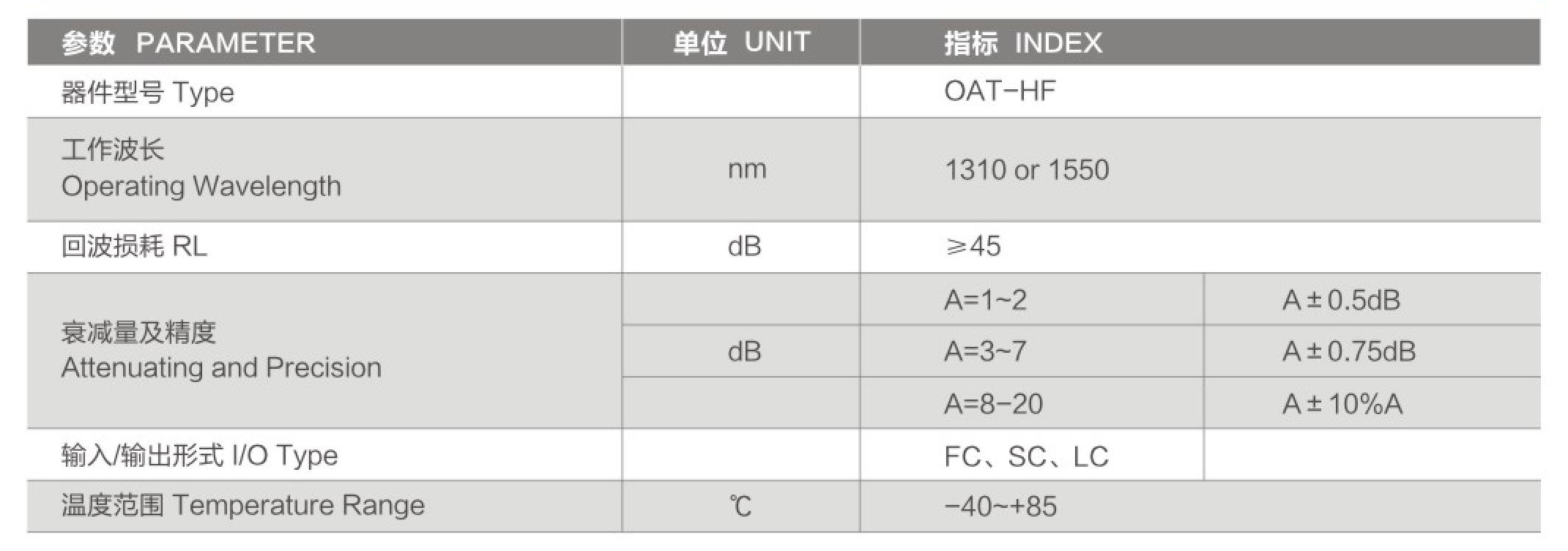 產品使用的是摻有金屬離子的衰減光纖制造成,能把光功率調整到所需要的水平。